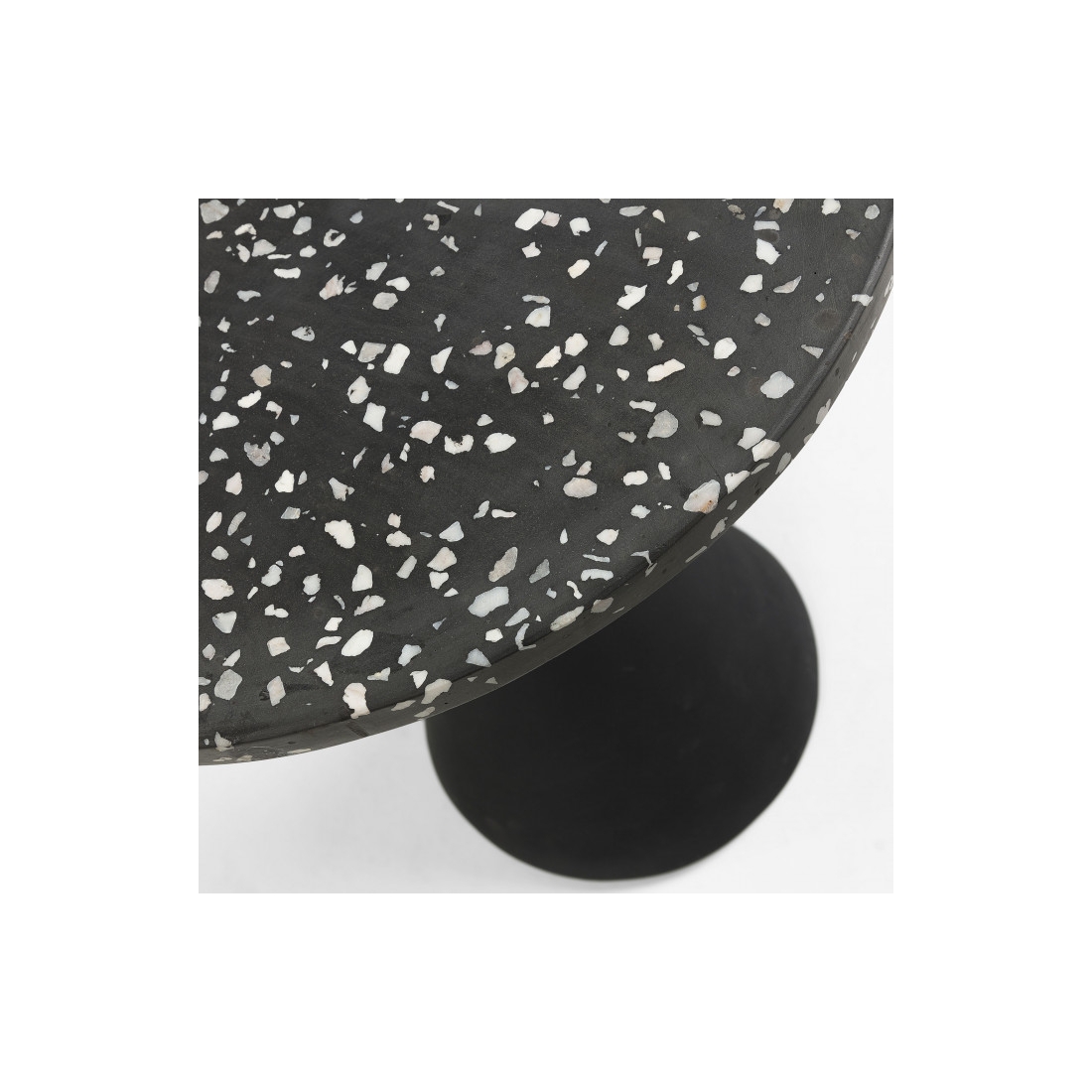 Príručny stolík DELANO BLACK s vrchnou časťou terazzo a kovovou nohou.