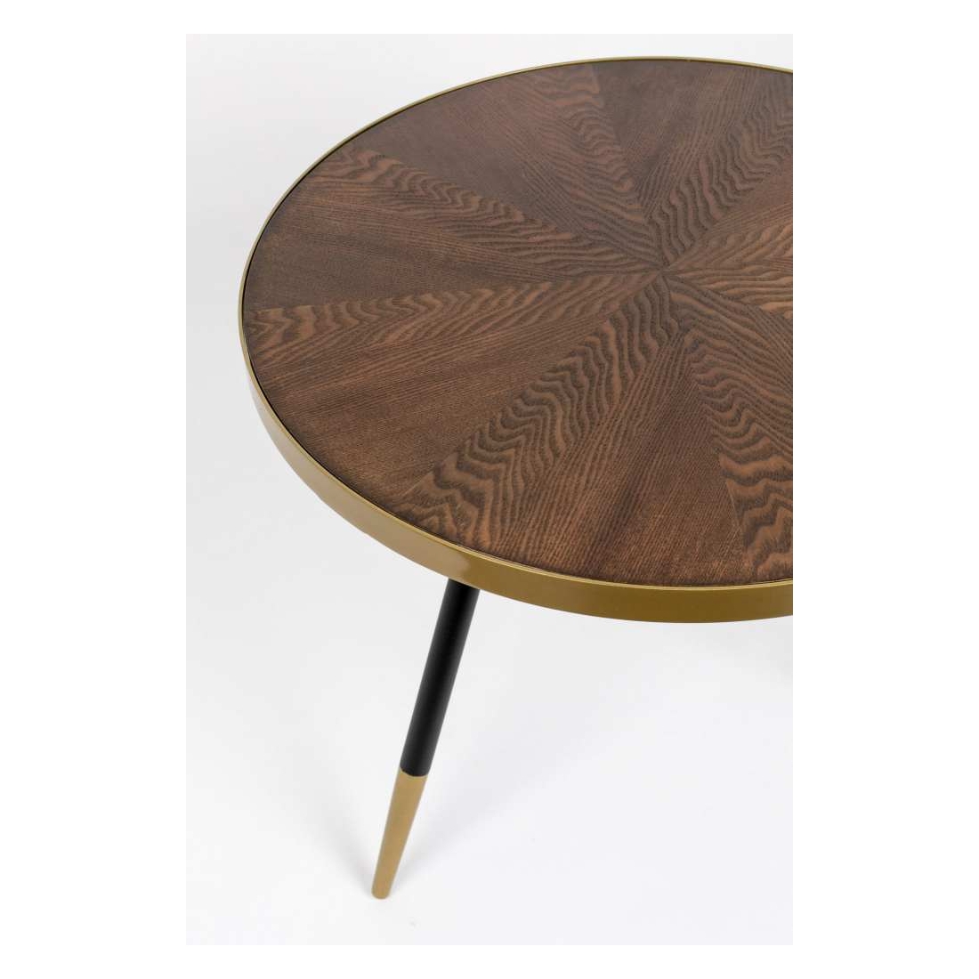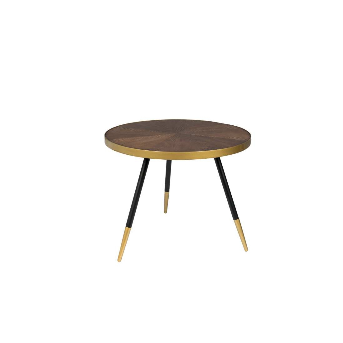 Konferenčný stolík WHITE LABEL LIVING DENISE má MDF stolovú dosku z jaseňového dreva vo farebnom prevedení orech. Železný lem a koncovky nôh sú maľované do zlata.