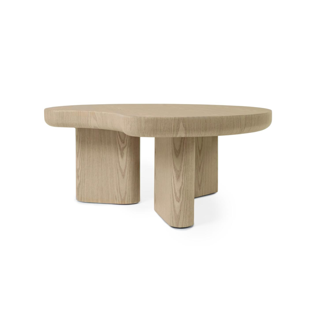 Konferenčný stolík JEROME je vyrobený z drevenej dyhy s dubovou povrchovou úpravou a vyniká organickým, moderným dizajnom. Nepravidelne tvarovaná doska s jemne plynulými líniami pôsobí výrazne a odlišuje sa od klasických geometrických tvarov. Doska spočíva na troch robustných nohách so zaoblenými hranami, ktoré zabezpečujú stabilitu a zároveň zvýrazňujú jeho sochársky charakter. Prirodzená kresba dreva dodáva stolíku teplo a textúru, vďaka čomu sa skvele hodí do moderných, severských alebo prírodne ladených interiérov, kde môže pôsobiť ako dominantný prvok.