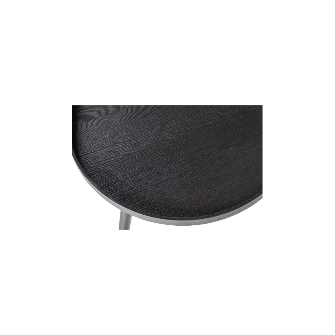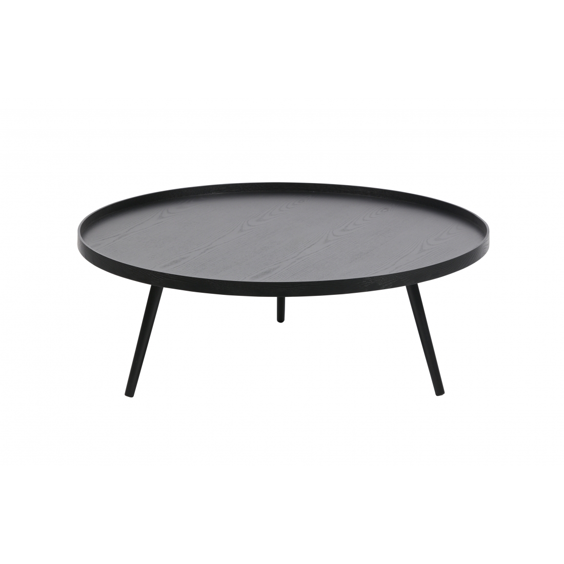 Tento priestranný konferenčný stolík od značky WOOOD má praktickú dosku so zvýšeným okrajom a priemerom 100 cm. Vďaka povrchovej úprave v čiernej jaseňovej dýhe a minimalistickému dizajnu sa hodí do každého štýlu. Drevené nohy sú lakované matnou čiernou farbou.