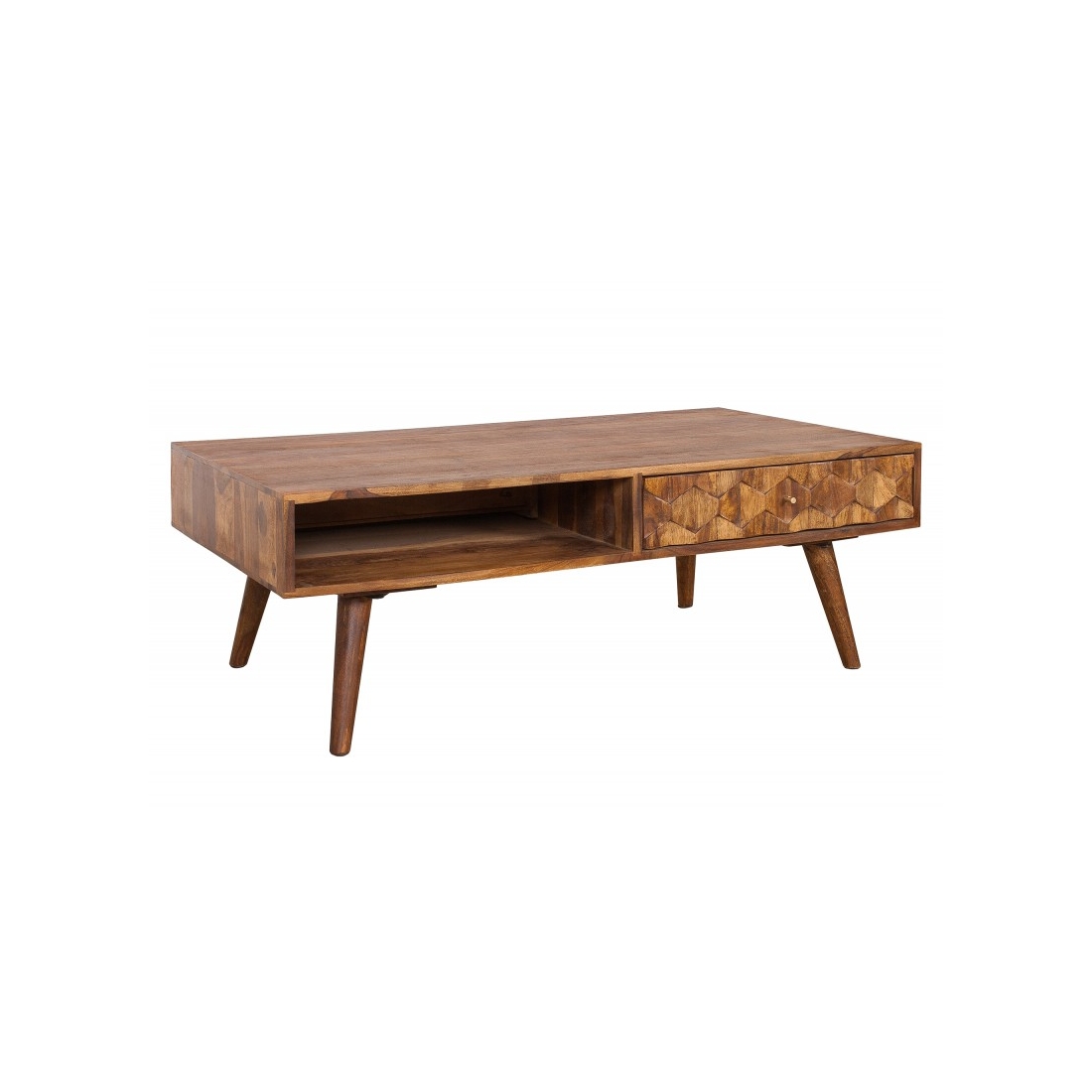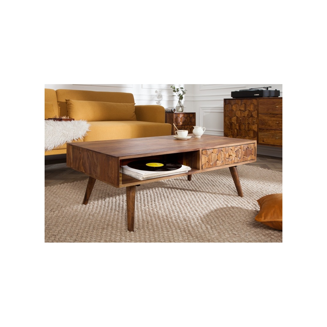 Konferenčný stolík z kolekcie MYSTIC LIVING. Ručne vyrobený z masívneho dreva Sheesham. Povrch je lakovaný. Kedže sa jedná o prírodný a ručne vyrábaný produkt môžu sa vyskytnúť farebné a rozmerové odchýlky.