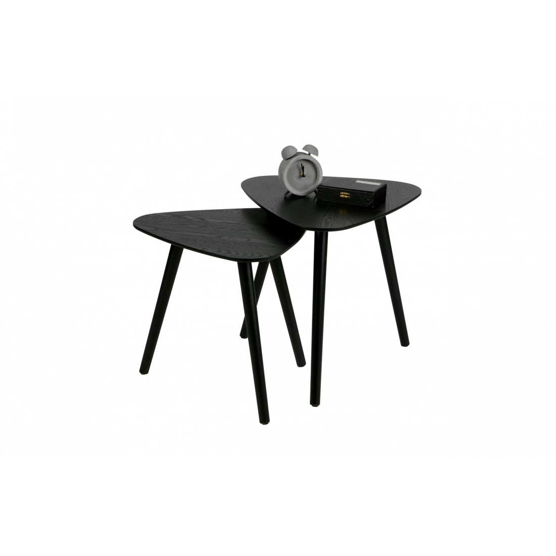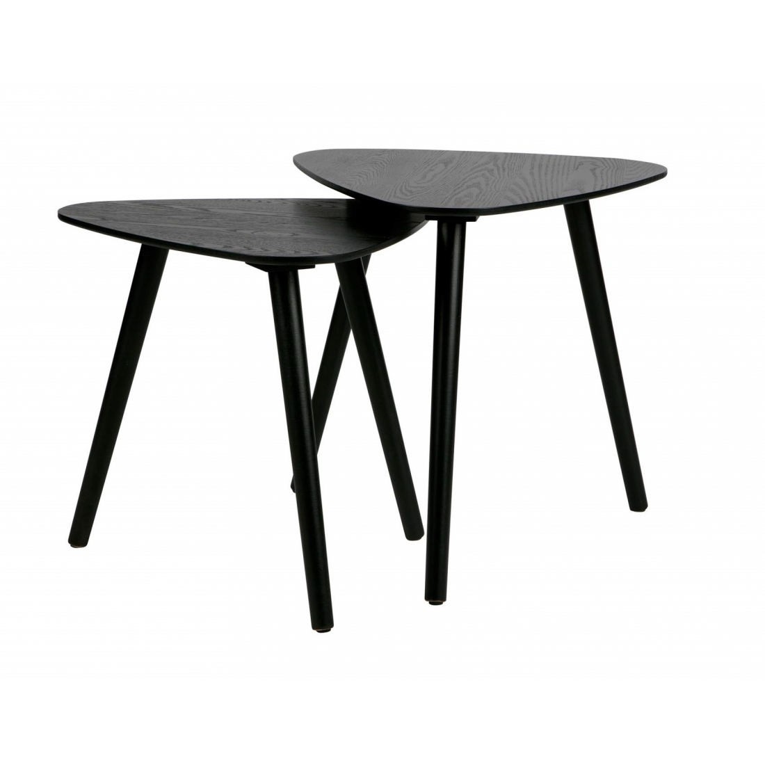 Set dvoch príručných stolíkov z dreva striekaných v čiernej farbe v hravom trojuholníkovom tvare od holandskej značky Woood.