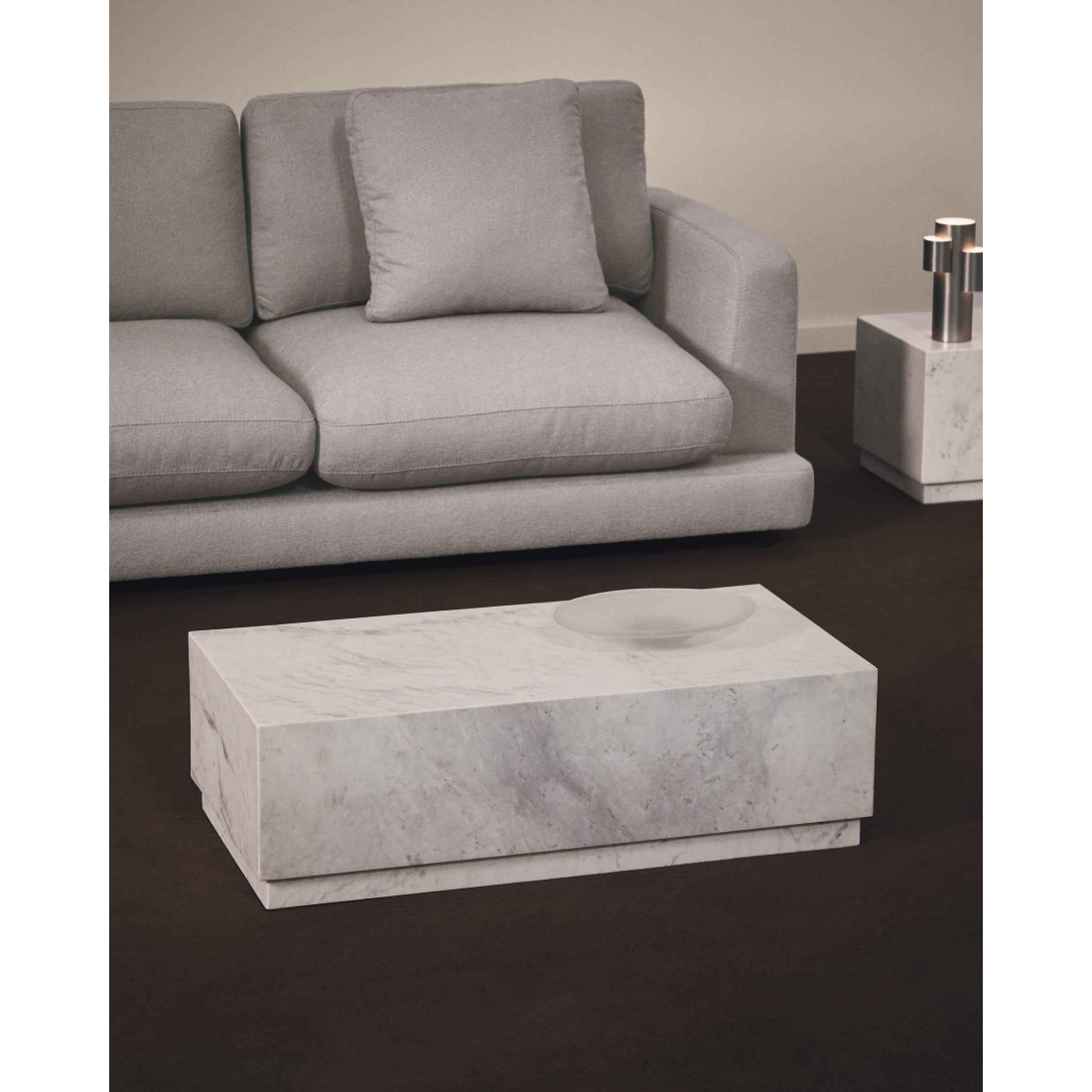 Konferenčný stolík SOREIN z mramoru. Kombinuje sa pevnosť mramoru s rafinovaným geometrickým dizajnom, ktorý dodáva každému priestoru osobitosť. Je vyrobená z pevných dosiek s hrúbkou 15 mm, ktoré sú zostavené tak, aby vytvorili kocku s dokonalými líniami. Dutý interiér odľahčuje hmotnosť a uľahčuje posúvanie. Každý stôl je jedinečný, s vlastnými odtieňmi a žilami, ktoré z neho robia exkluzívny kúsok. Obsahuje plastové chrániče základne, ktoré zabraňujú poškriabaniu podlahy.