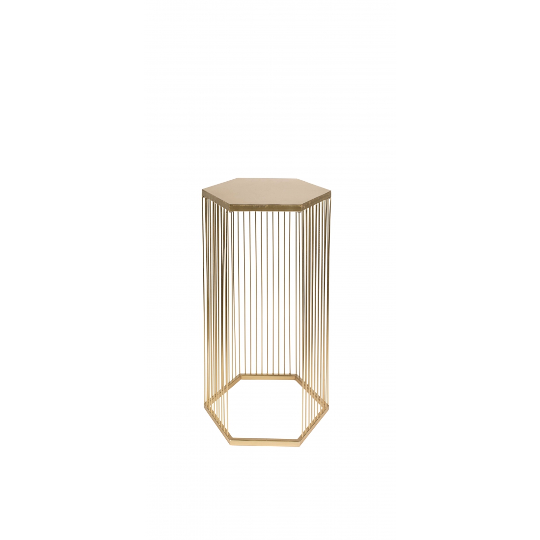 Zlatý príručný stolík s 10 mm hrubou stolovou doskou. Lakovaný v zlatej práškovej farbe.